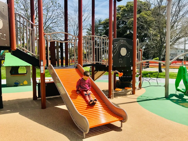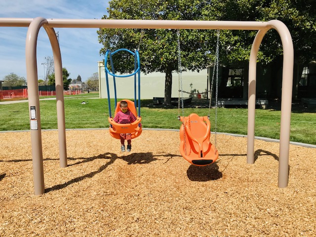 Pro Tip: If you have toddlers and big kids, the big playground has a clear sight line from the totlot, so you can keep an eye on older siblings relatively easily.Â