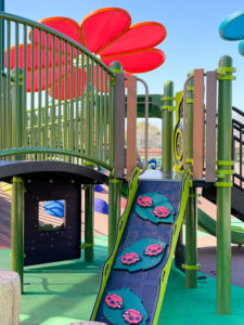 This is not an average, nor boring playground. Its diverse range of inclusive features and activities kept my girls running, climbing, jumping, active and engaged. Maybe a little too much because as soon as we got in the car, they asked if they could go back the next day. Maybe not tomorrow, but I’m sure we’ll be back in the near future.