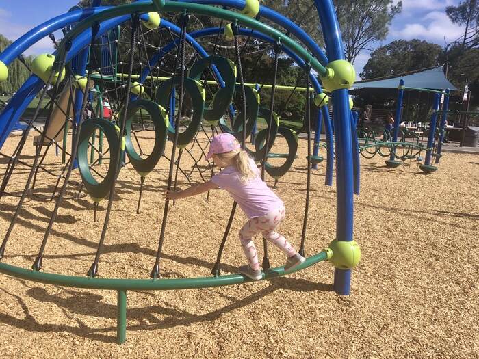 Cons: Limited shade; windy; families with mixed ages may need to split time between the two playgrounds