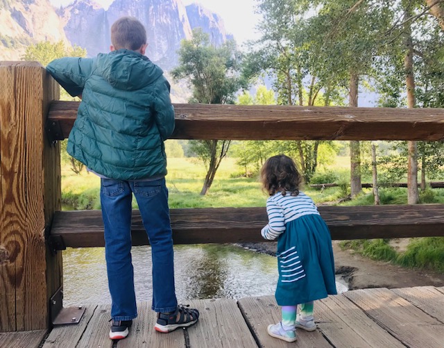 Yosemite Valley is home to two epic waterfalls that are easily accessible via short toddler-friendly hikes. When we went, Bridalveil Falls was closed due to construction. Happily, Yosemite Falls was open and it was awesome. The falls are at their best in the spring, but our visit in the summer still provided ample excitement for the kids. The hike to Lower Yosemite Falls is a short, flat one-mile loop. When you get to the falls you can scramble around on the rocks (though they’re slippery), and even find your way closer to the falls if you’re up for the challenge. Of note, we encountered a bear and her cub on this hike. It was exciting, scary, and a real highlight of the trip.